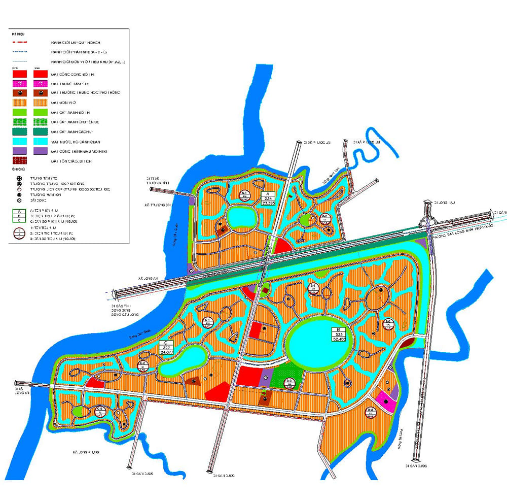 - Diện tích khoảng: 137,57 ha, chiếm khoảng 12,63% đất tự nhiên của khu đô thị.