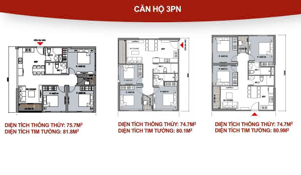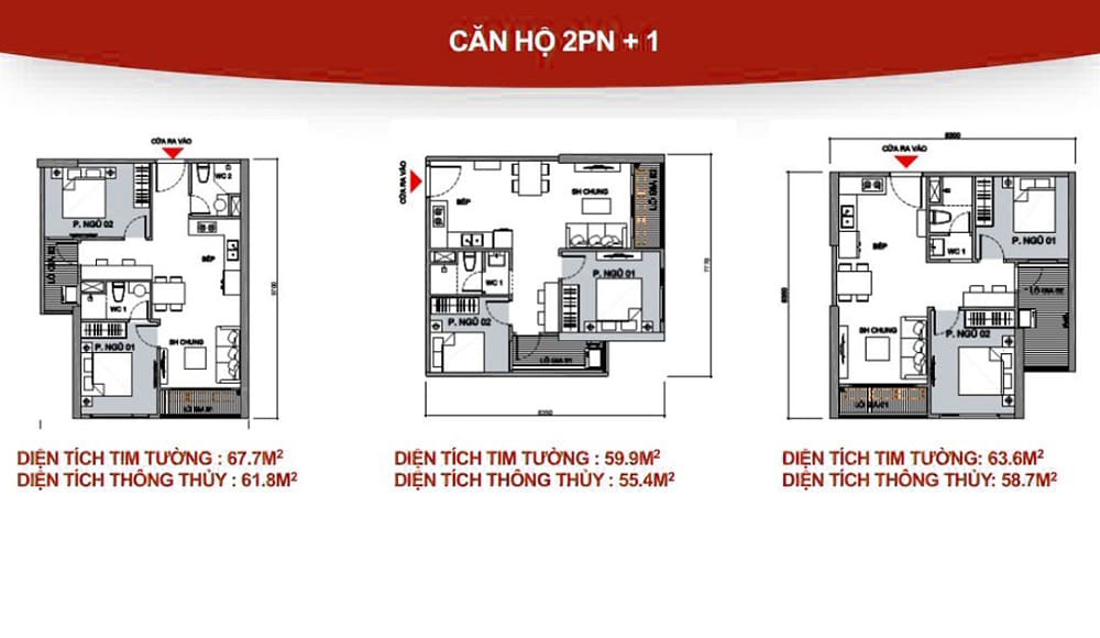 - Căn hộ chung cư: Thiết kế 1 – 3 phòng ngủ đa dạng diện tích, ban công rộng phía trước phòng khách giúp đón nắng và ánh sáng tự nhiên tiết kiệm điện năng. Mỗi phòng chức năng bố trí hợp lý, tạo cảm giác rộng rãi và thoáng đãng cho cư dân sử dụng.