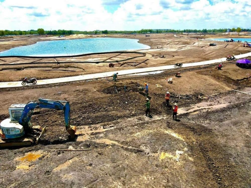 - Hiện trạng: Hoàn tất giải phóng mặt bằng, bắt đầu lắp hàng rào bao quanh dự án và đưa máy móc đến công trường.